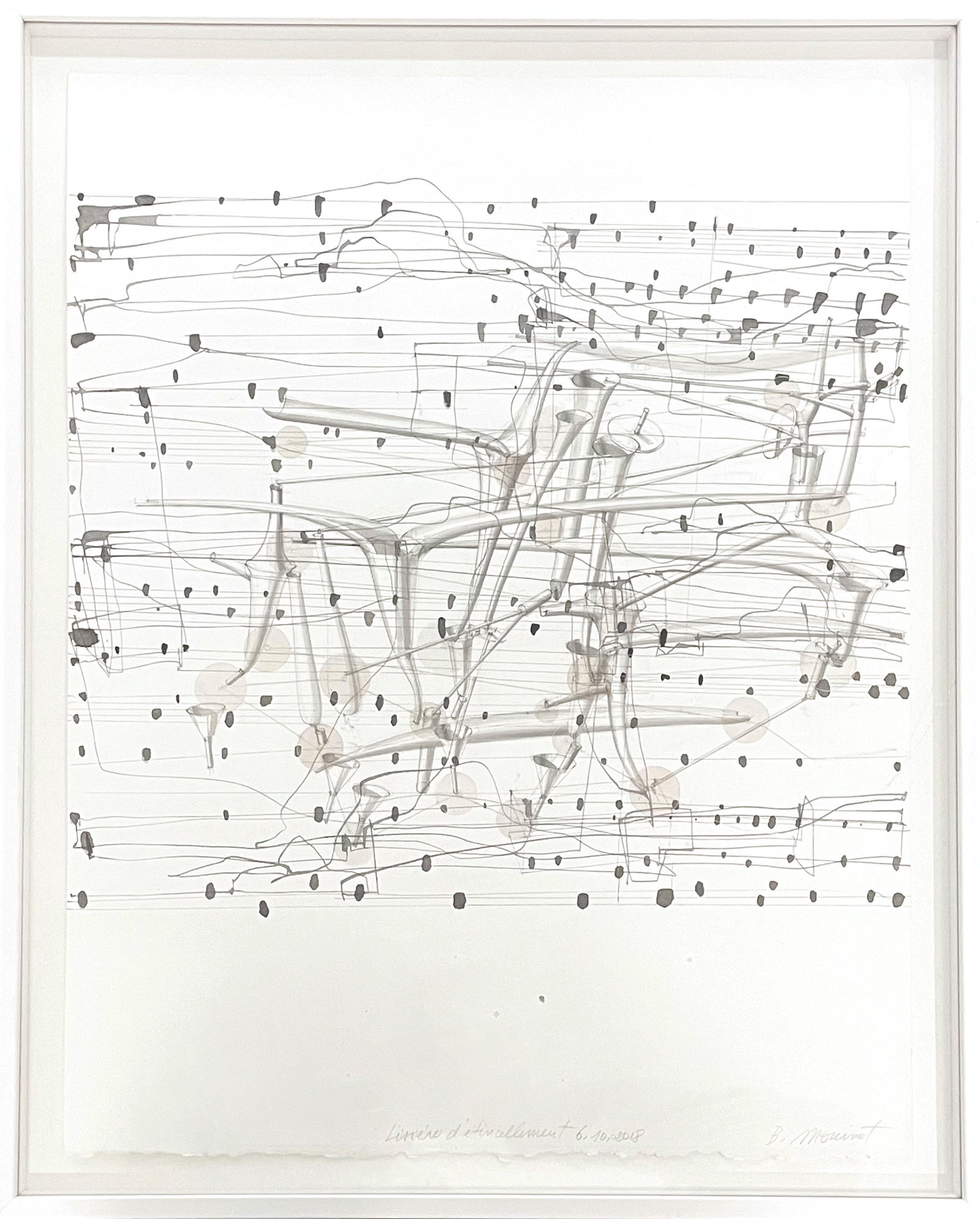 Between 2005 and 2012, he exhibited at the Baudoin Lebon gallery. He taught drawing at the Ecole Nationale Supérieure des Beaux-Arts de Paris from 2006 to 2015. 2009 marks the beginning of his collaboration with Galerie Catherine Putman. He continues to create major installations, and participates in numerous projects, exhibitions, reviews and fairs linked to the question of drawing, a field in which his practice remains intense.
