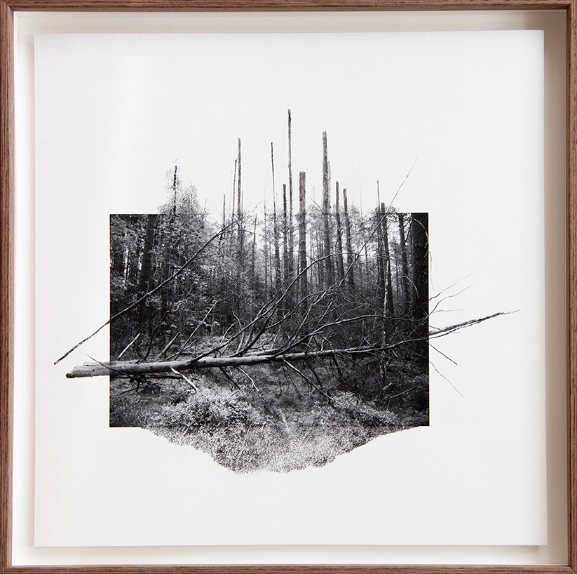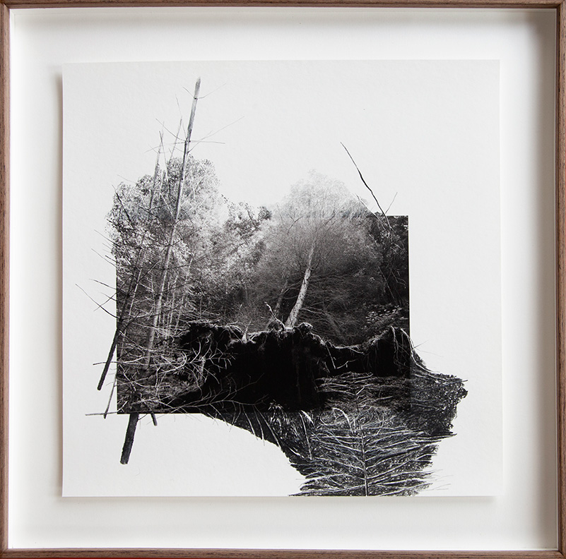 Après avoir développé un travail photographique pendant plusieurs années, elle effectue une singulière et sensible transition vers le dessin. À l’occasion d’une résidence artistique au Sunnhorland Museum en Norvège en 2019, s’est opéré le passage d’une approche purement photographique à une vision dessinée du paysage. À partir de ses propres tirages Dana Cojbuc extrapole, redéfinit les limites et réinvente le sujet par le dessin. La frontière entre la photographie et le travail au fusain est subtile, mystérieuse, elle ouvre la voie à un paysage imaginaire. Ce prolongement par le dessin agit comme un révélateur du caractère graphique et plastique du paysage réel, dans lequel elle intervient parfois au préalable à la manière d’un artiste du land Art. La galerie présentera des œuvres inédites de l’artiste, réalisées à partir d’images saisies dans les Landes, jouant de la verticalité erratique des arbres et de la matérialité mouvante des sols. Ses œuvres ont été exposées au Sunnhorland Museum (Norvège), au Festival Backlight à Tampere (Finlande), au Festival Circulations (Paris), au Festival Manifesto (Toulouse), au Festival Confrontations (Gex), à la Maison de la photographie d’Europe Centrale à Bratislava (Slovaquie), au Musée des Franciscaines à Deauville à l’occasion du Festival Planches Contact, à la BnF dans l’exposition La photographie à tout prix, au Salon unRepresented a ppr oche en 2023. Finaliste du Prix Photo Brussels festival, « In the shadow of trees » en 2021, elle reçoit le Prix du jury pour la résidence Tremplins Jeunes Talents au Festival Planches Contact en 2022. La même année, elle est lauréate de la Bourse du talent «Paysage» et publie son premier livre Yggdrasil.