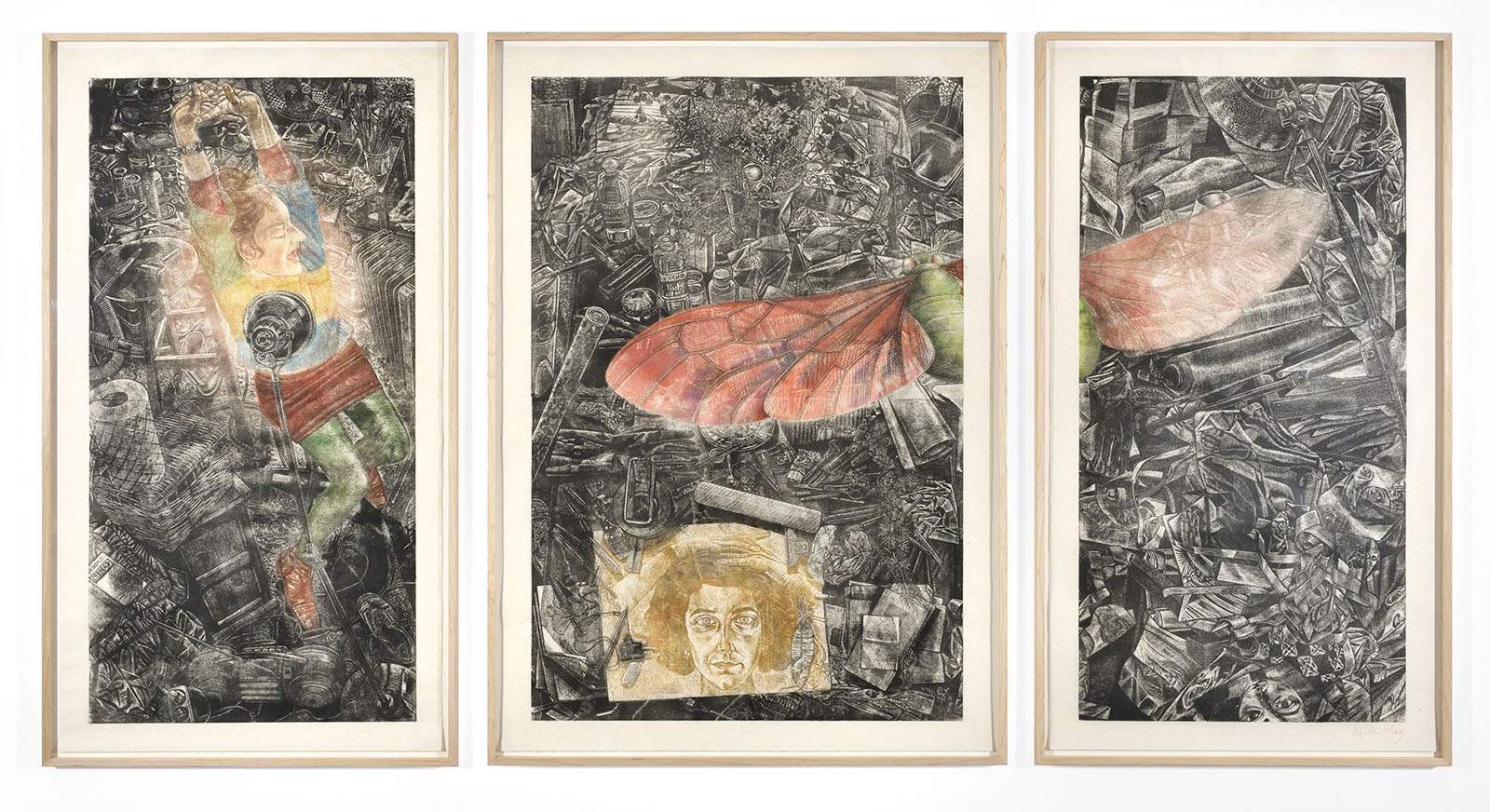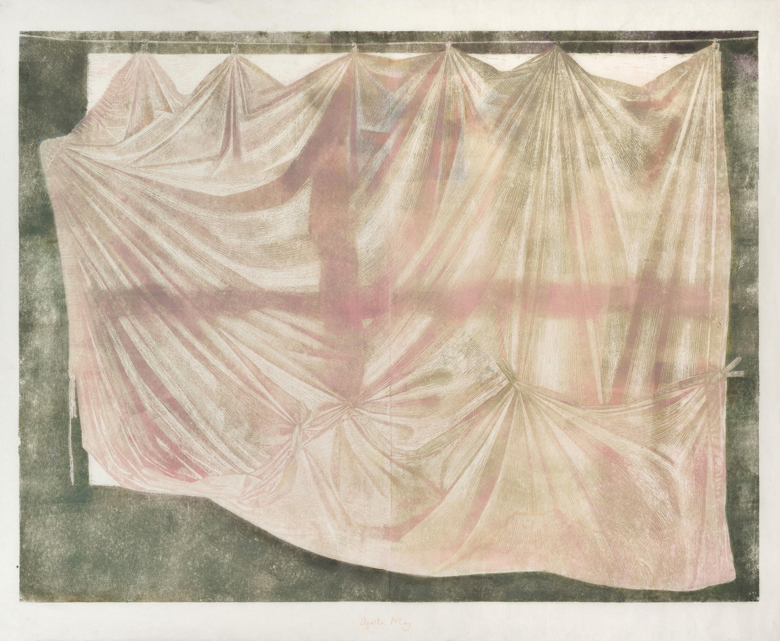 Les gravures d'Agathe May sont encrées comme des peintures, tirées à la main, assemblées, collées, rehaussées. L'artiste fait de chaque tirage un exemplaire unique, une image à chaque fois réinventée.