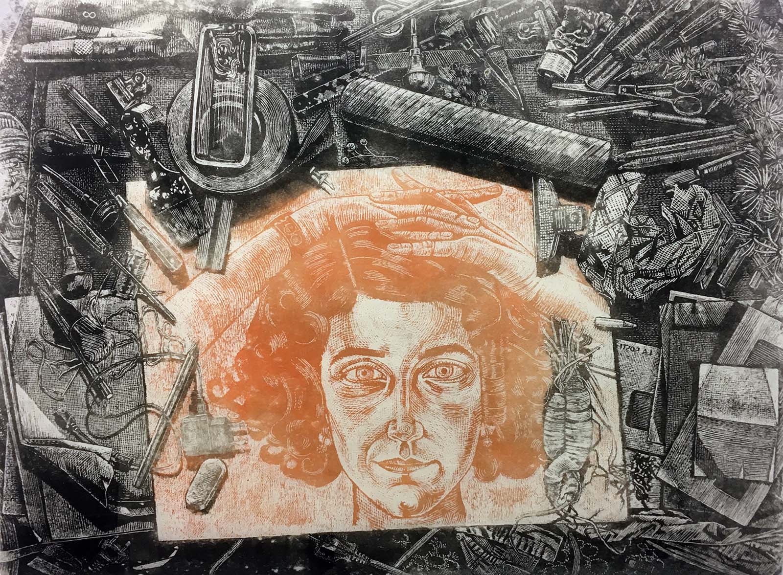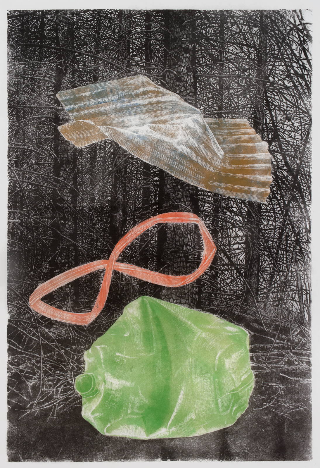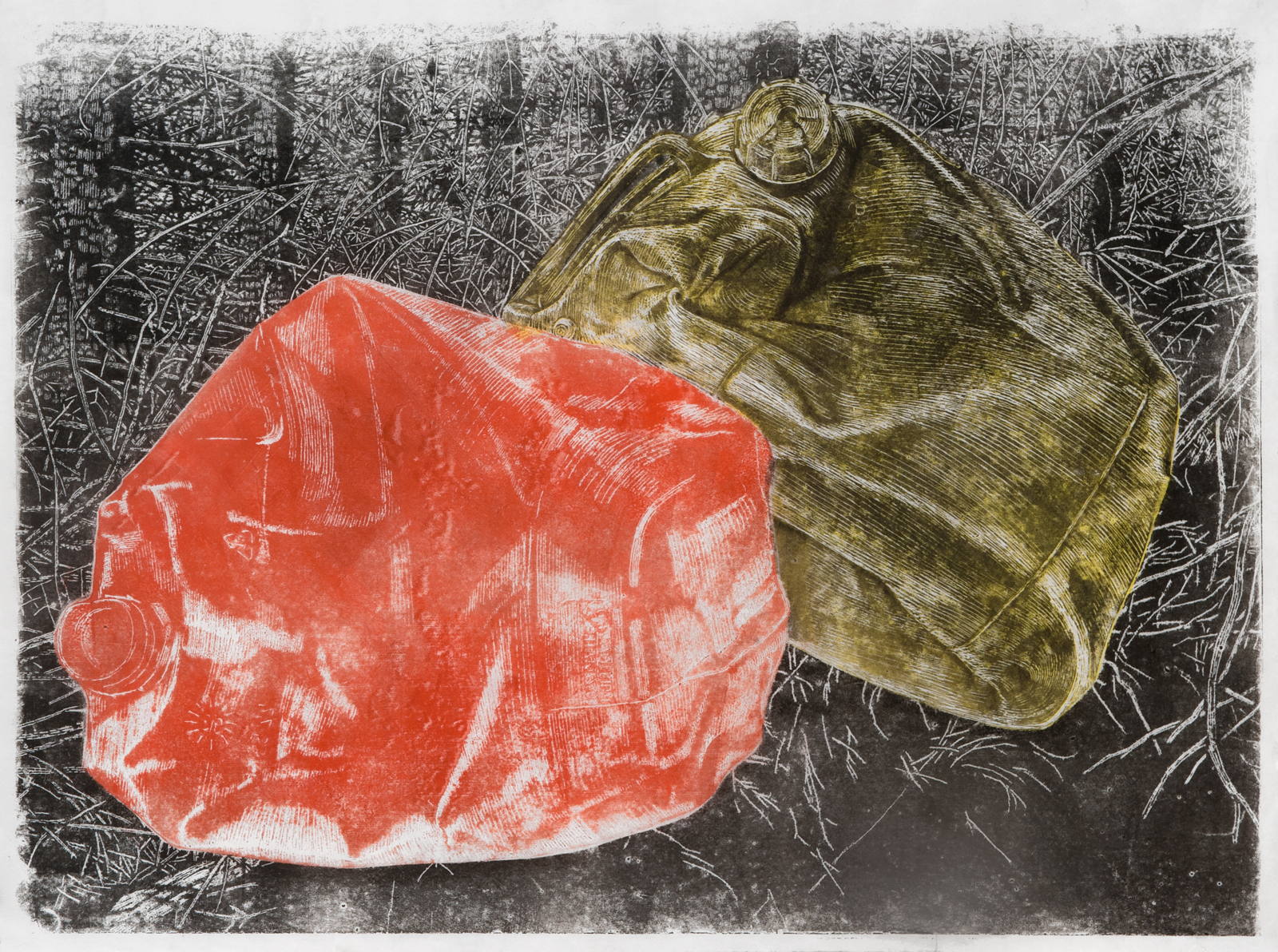xylographie à encrage monotypique marouflée sur carton entoilé
