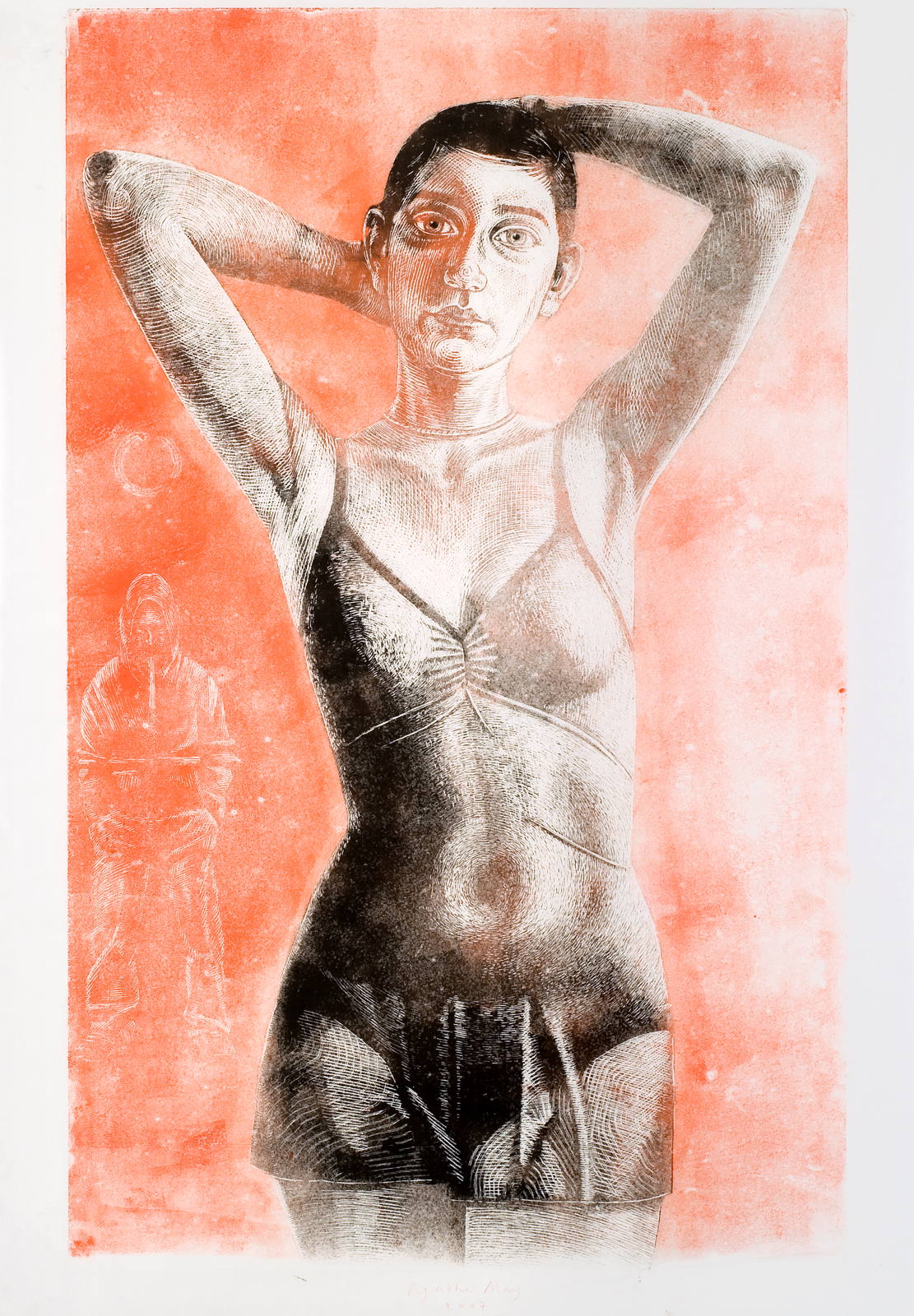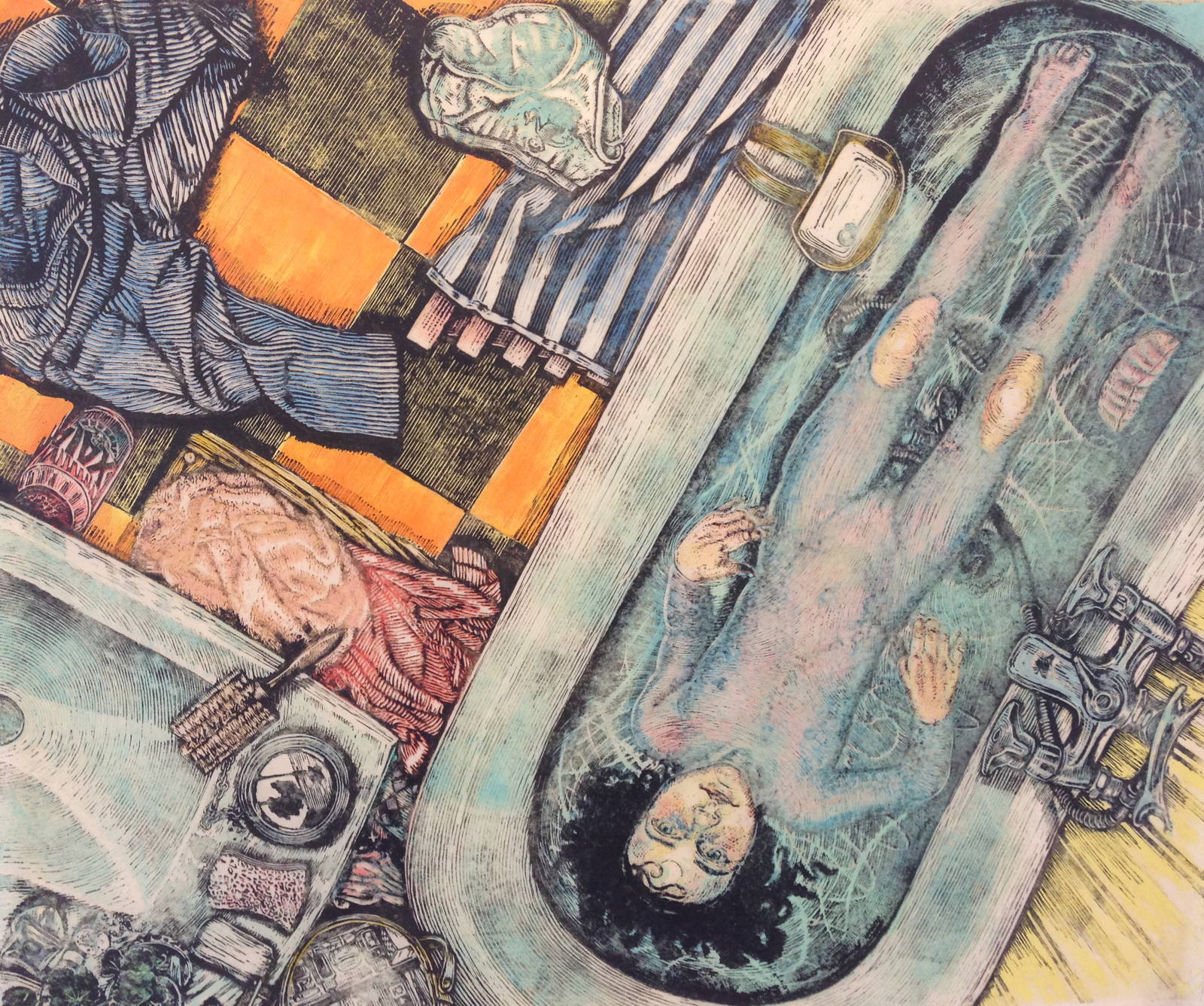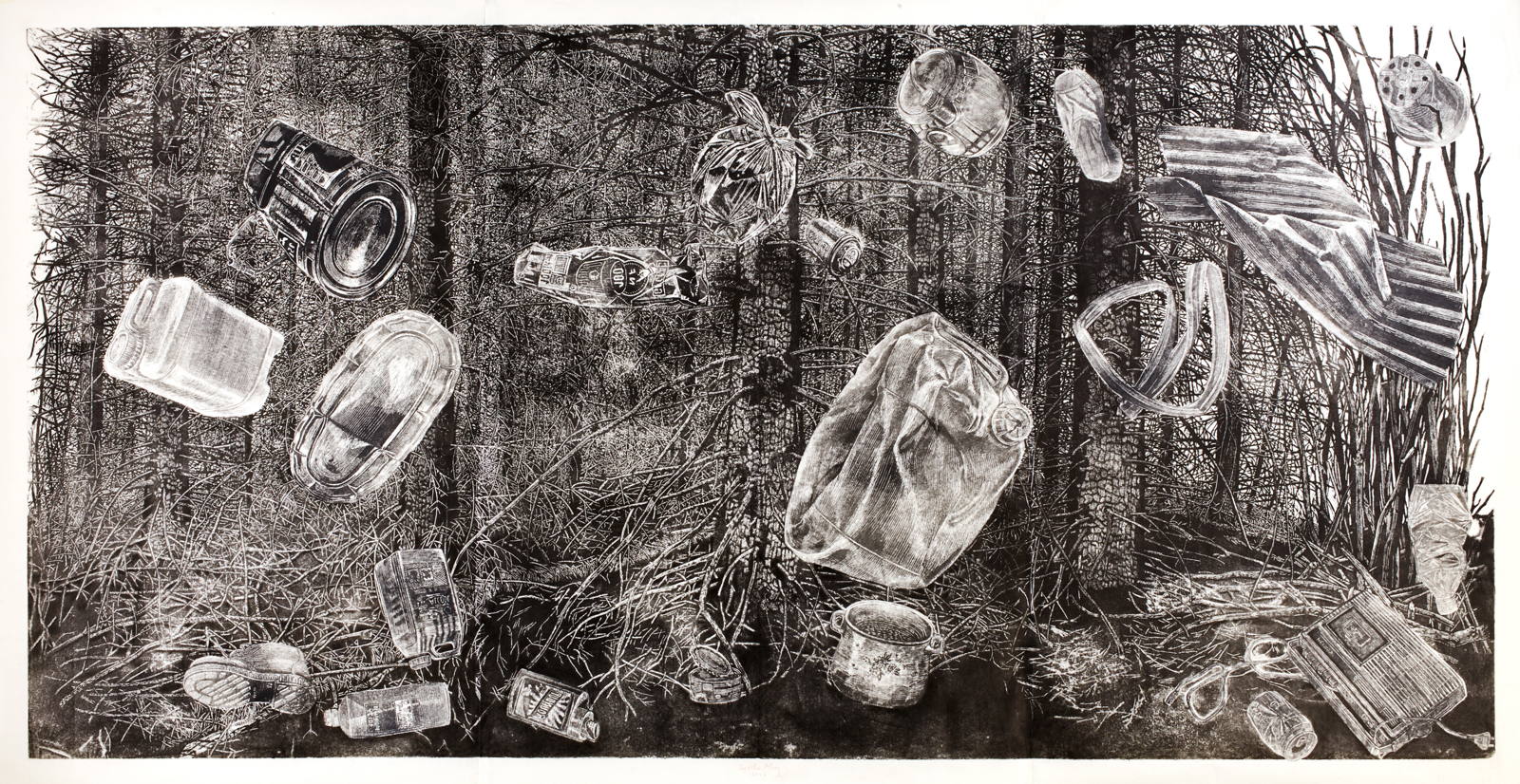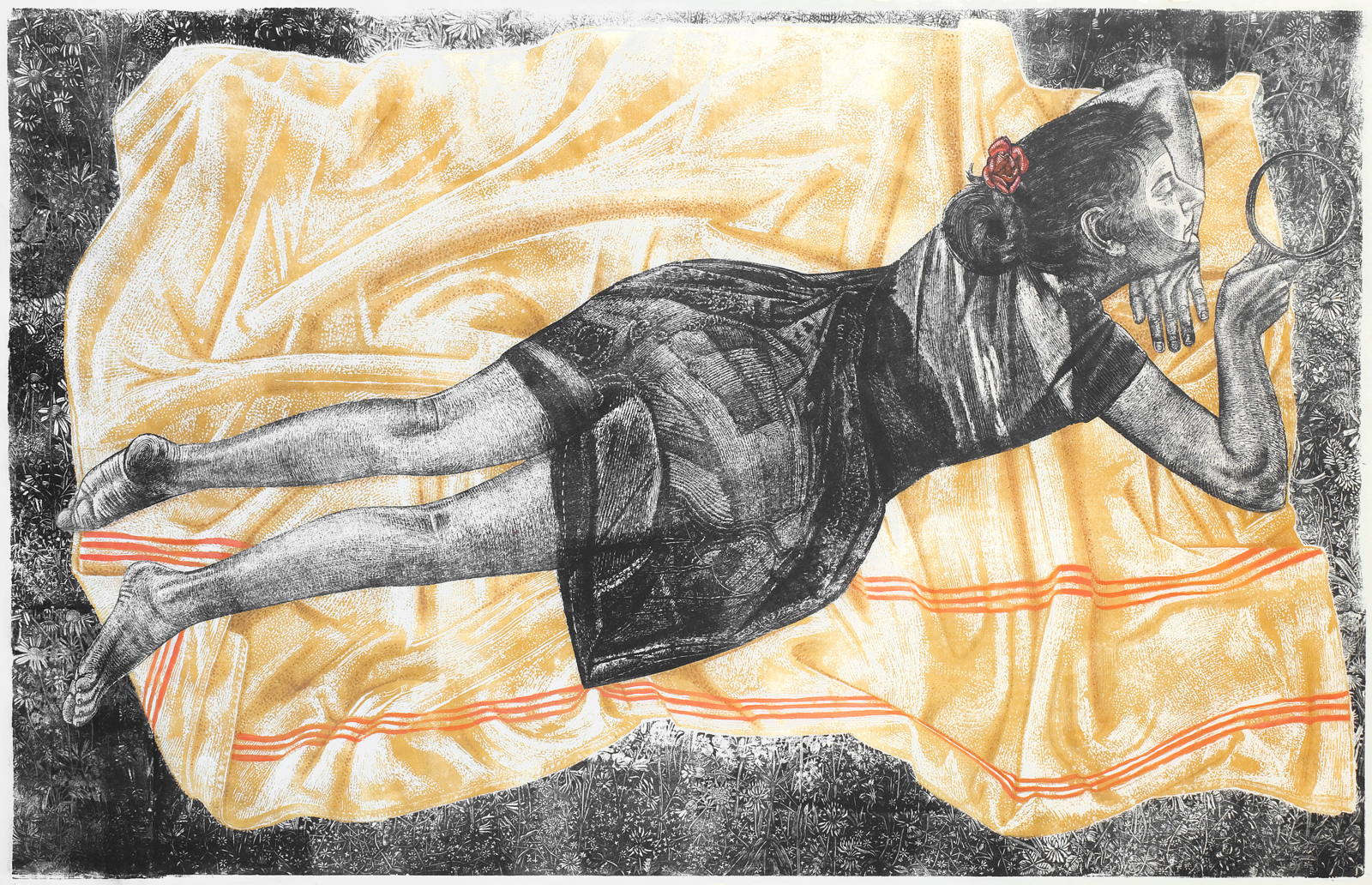 xylographie à encrage monotypique marouflée sur carton entoilé