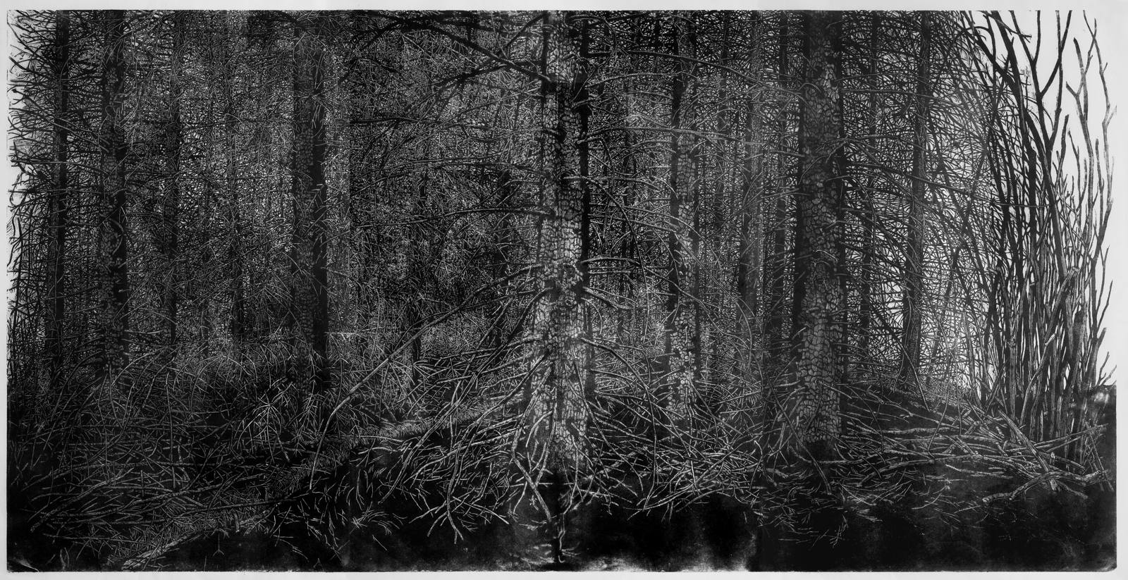 xylographie à encrage monotypique sur papier japon (polyptyque)