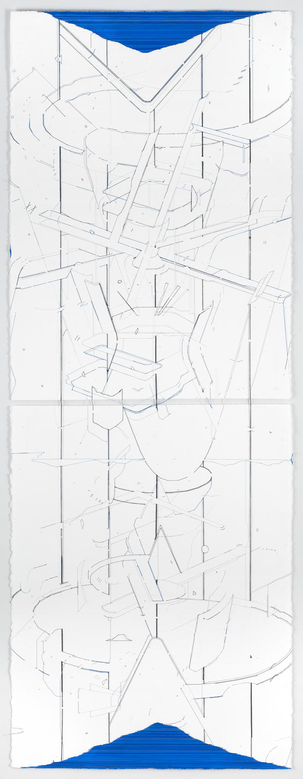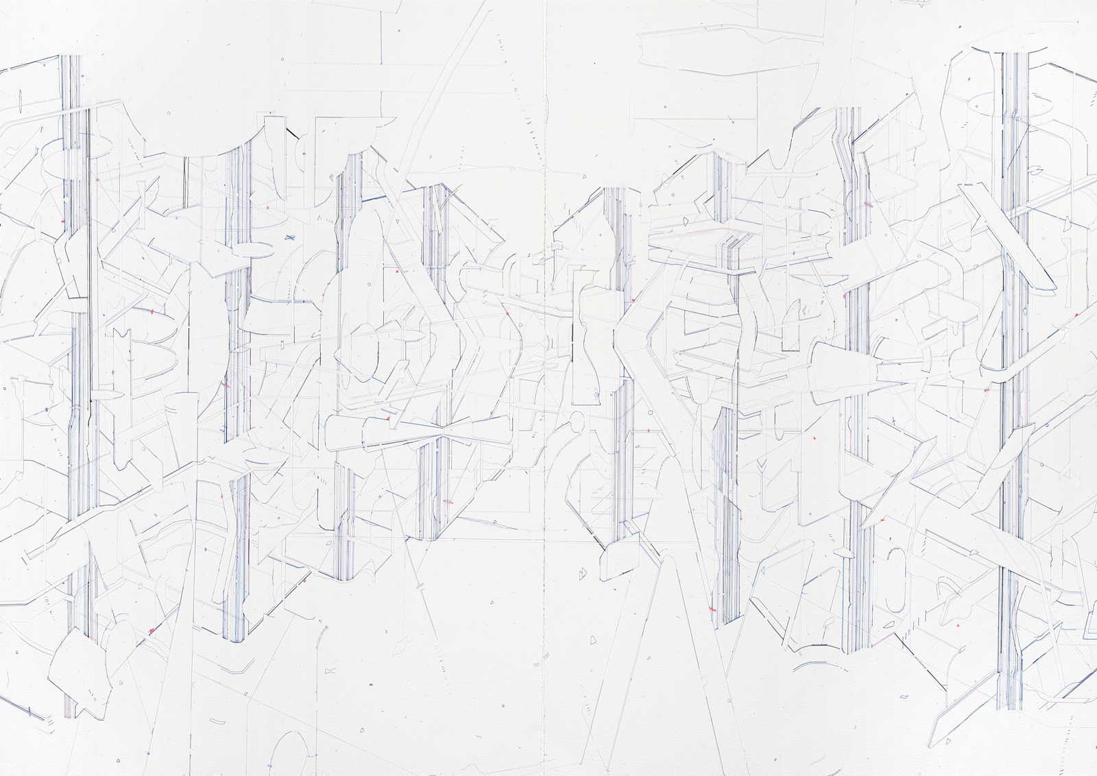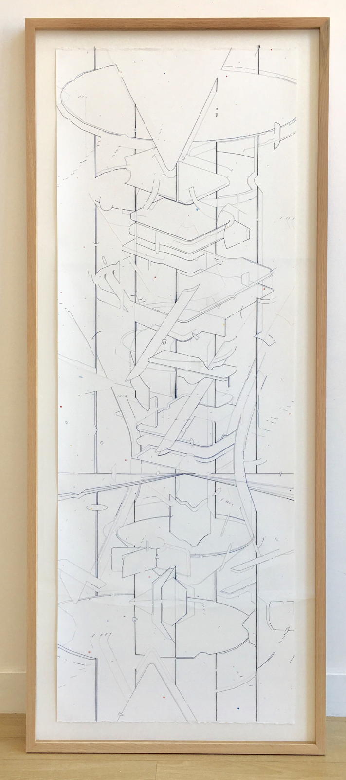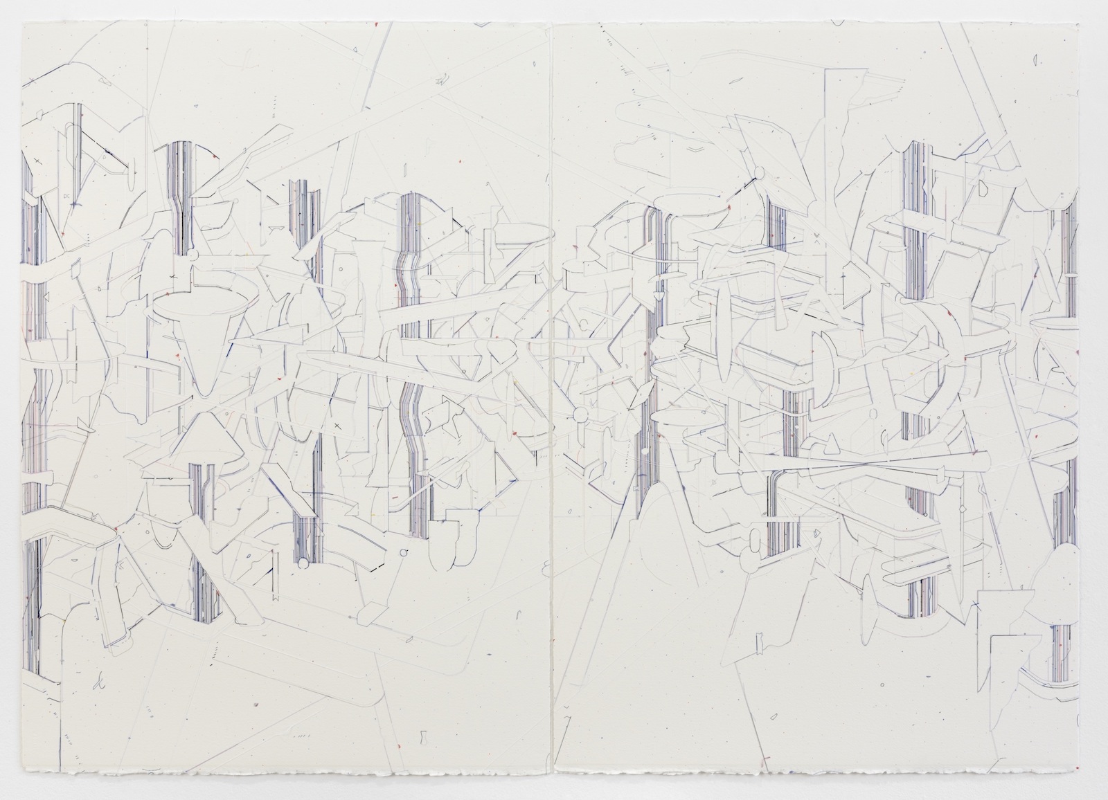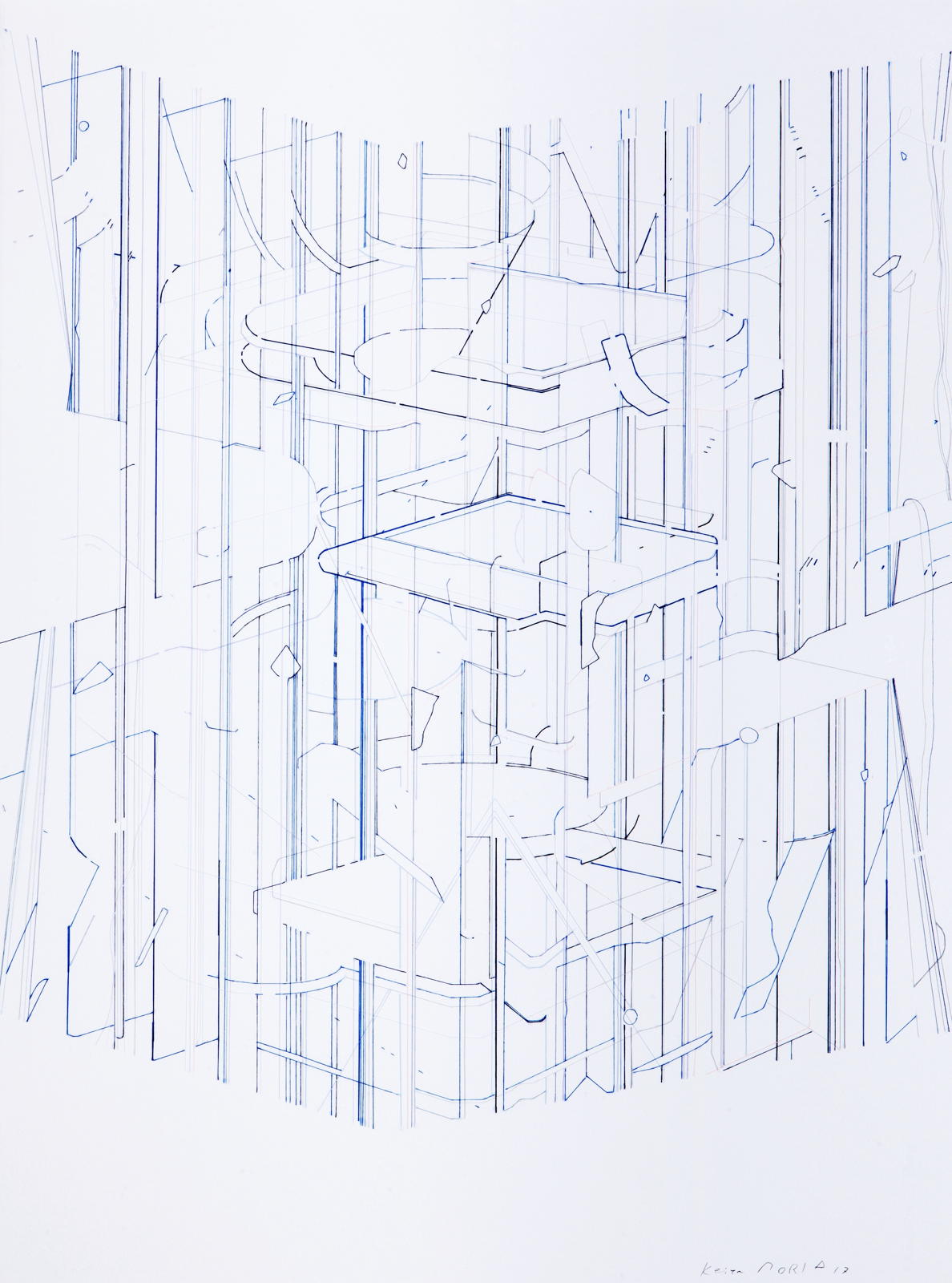 Keita Mori réalise ses dessins avec une technique particulière qu'il développe depuis 2011 : des fils tendus sur le papier avec un pistolet à colle. Il crée ainsi des espaces, par l'accumulation et l'enchevêtrement des fils : objets, systèmes dans lesquels les fissures - ou « bug » tel qu'il les appelle - révèlent des espaces éclatés, en mouvement, comme provisoires.